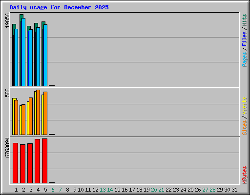 | Day | Hits | Files | Pages | Visits | Sites | KBytes | ||||||